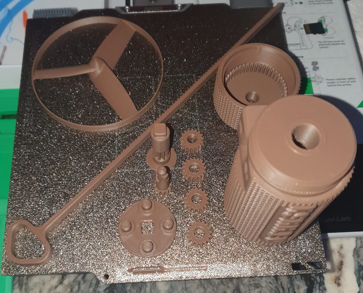 مروحة ميكانيكية مع نظام تروس متداخل. نموذج تعليمي يوضح مبادئ الميكانيكا.
